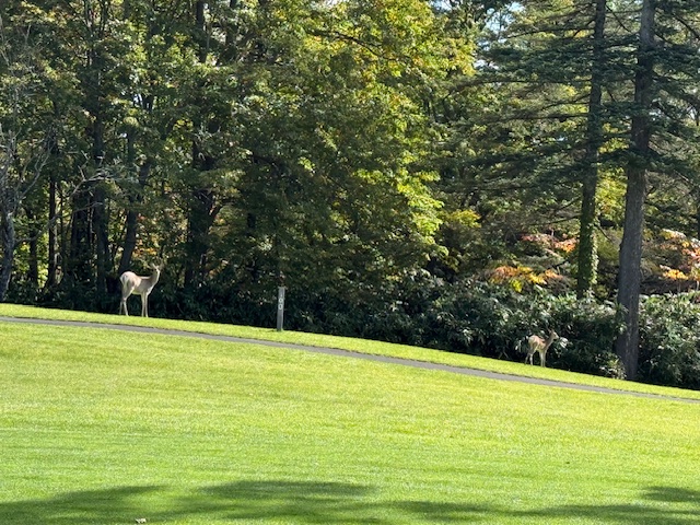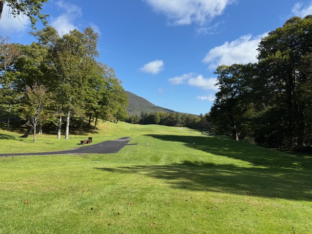 13番ショートは、今日は5アイアンで打つもダフッてクマ笹の中へ。打ち直す元気がなく、ドロップエリアから。ダボ。