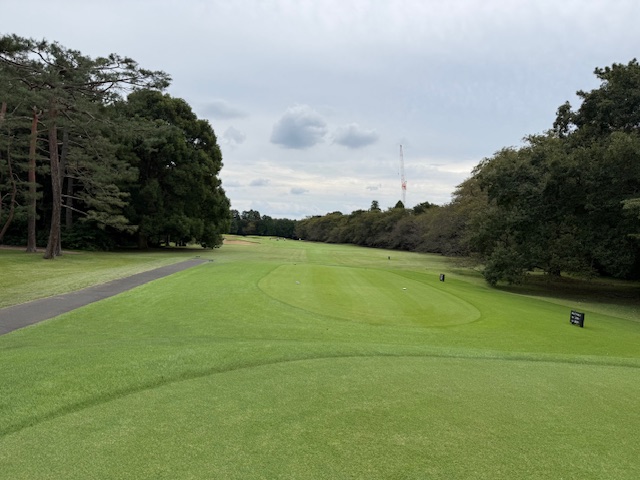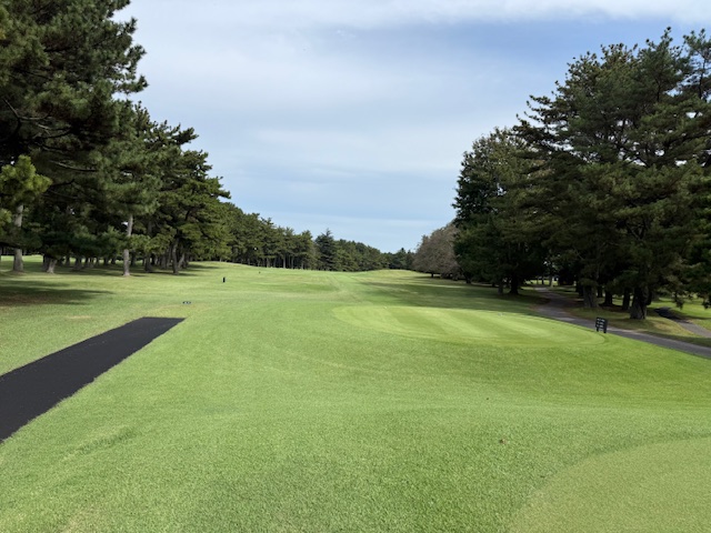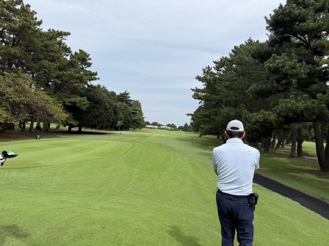 で、アウトから。70歳以上は白も可能というルールで、私は青ティで進行します。
