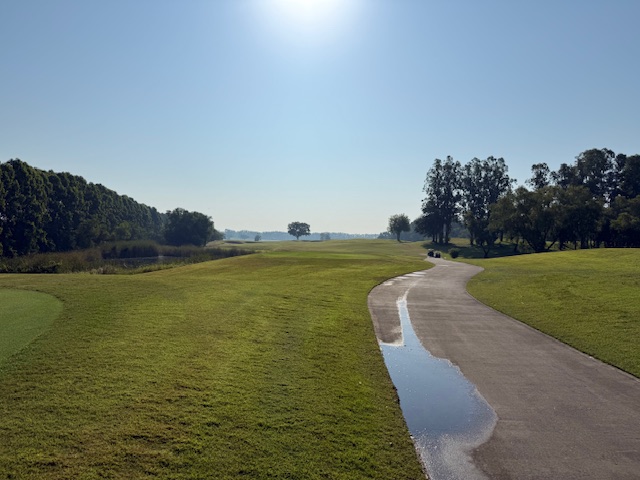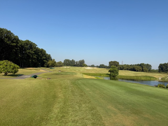 11番326yミドルは、ドライバーは変な当たりの竜巻球で池へ。手前にドロップしての3打目を3wで打つも、今度は右へ。またまた池へ。5オンの7となる。