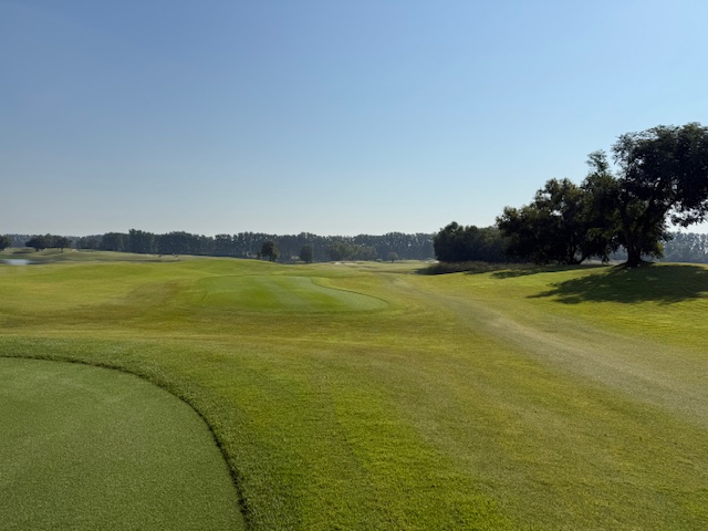 17番546yロングは、ドライバーはまずまず。3wもまずまず。3打目を6アイアンで打つもバンカーイン。出ず。7を打つ。