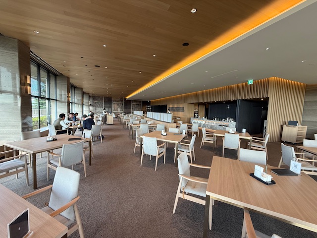 到着後、梅原副支配人にご挨拶後、着換えてレストランへ。うわー!綺麗になってます。お手洗いも凄い!