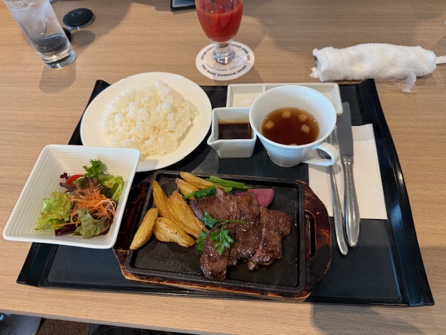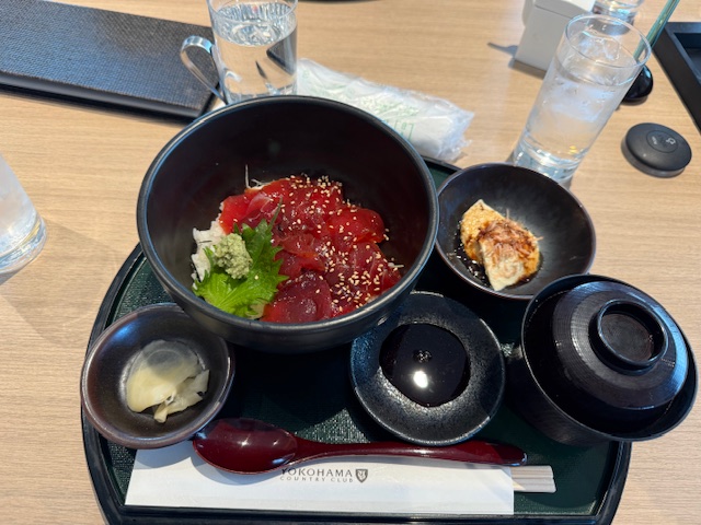 ランチは、ステーキにするかマグロ漬け丼にするか迷ったが、まぐろ漬けにしたが、、、これが、、、。ステーキだったな!。後ろの組のYさんが笑っている!「前田さん、それ×なんですよ!」「そんなの早く言ってよ~」大笑い。