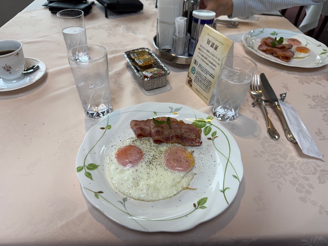 まずは、レストランで縁のM.Fさん、S.Mさんとベーコンエッグを食しながら歓談後、アウトから。