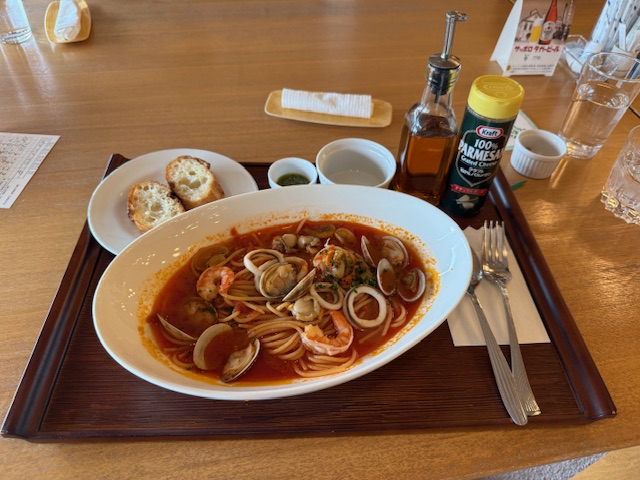 ランチは、トマト味のパスタを食す。美味い!