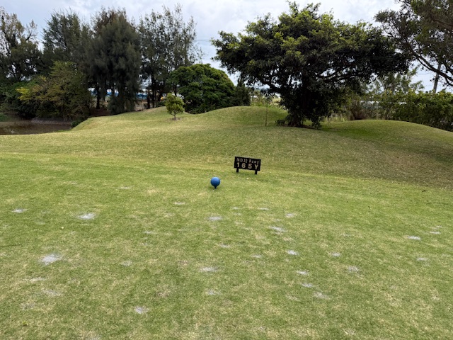 9番426yミドルは、ドライバーが竜巻球。暫定球も竜巻球。結局、2球ともない。7オンから9となる。ここまでアンダーだったA.Fさんが残念ダボ。