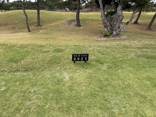 18番428yミドルは、ドライバーはまずまず。uで打つも右へ。寄らず入らずボギー。