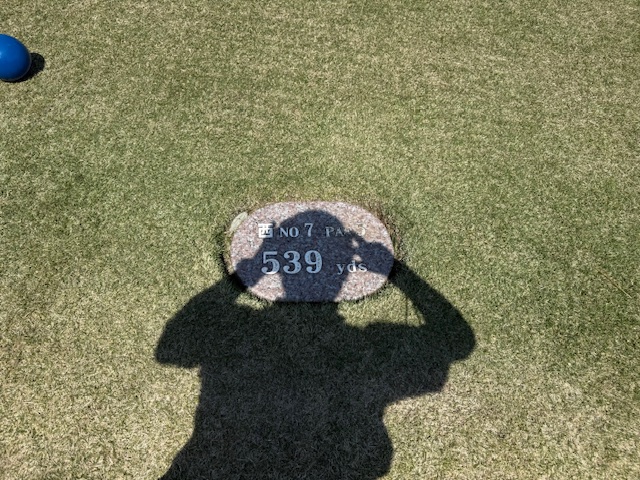 7番560yロングは、ドライバー、3w、6アイアンでバンカーイン。6mを沈めてナイス銅パー。