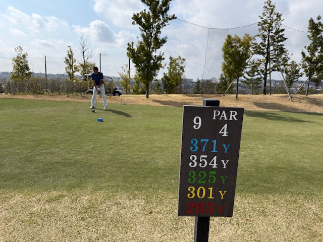 9番371yミドルは、ドライバー、6アイアンで左カラー横へ。ここからのアプは2.7mに。これを沈めて金竿パーベスト。