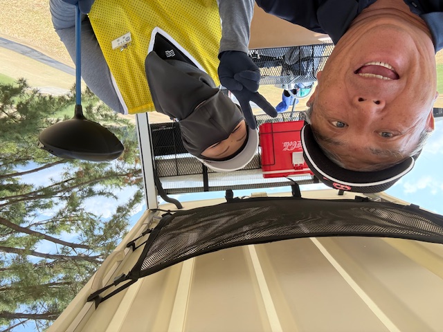 13番(4番)372y共有グリーンのミドルは、ドライバーは左へ。6アイアンでレイアップ。52度で3オン。ここからアホの3パンチダボで×。しっかり2オンさせたS.Mさんが無難にパーでベスト獲得。