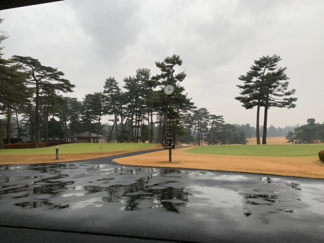 前半だけは持つかな?と期待しながら10番ホールをスタートし、14番ホールぐらいでポツポツと傘を差し始めました。途中一時回復するかな?と思わせながら、前半終了の際はもう本格的に降る気配です。