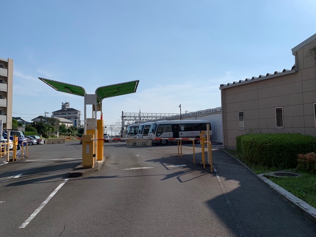 ■倶楽部バスが交番裏手の駐車場で待機していますので、こちらから乗車します。(左)