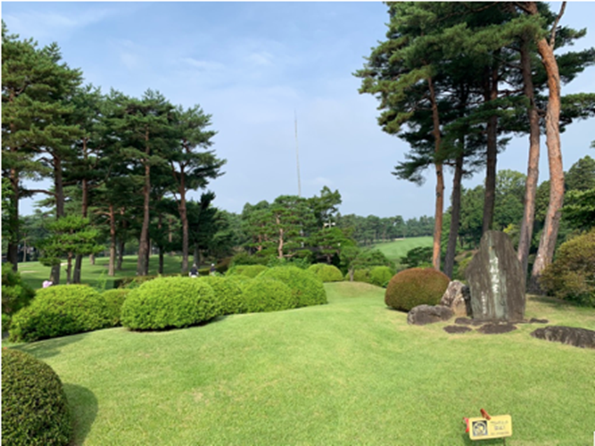 ■ハウスからインコース池越えティーグランドへ、日本庭園を思わせる景観