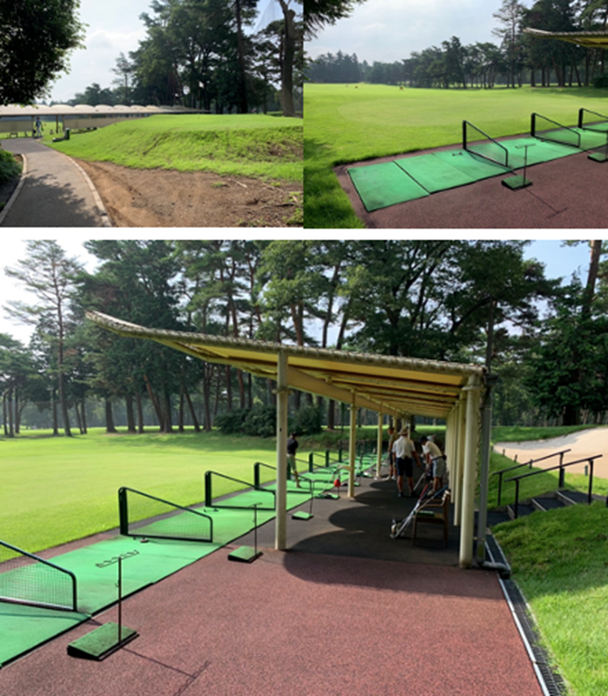 倶楽部ハウスから歩道橋を渡り、アウトスタート小屋をさらに奥に進みます。12打席、270ydほどあり、しかも屋根付きです。