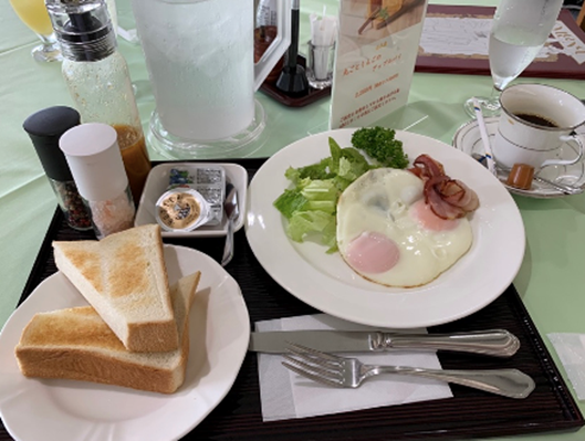 ■リーズナブルな価格の朝食メニューを用意、朝ホテルで四里餅を摘んで来ましたが、