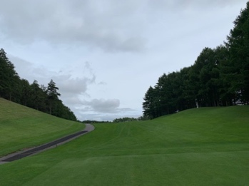 丘の頂点からダウンスロープの広いフェアウェイと先に広がるグリーンの景色は、インコースならではで、変化のある景色にうっとりします。