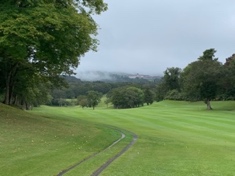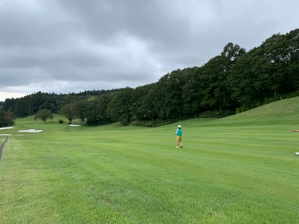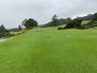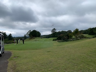 2日目No.11のティーグランドに上がると、雲が高くなり奇跡的に雨が上がります。