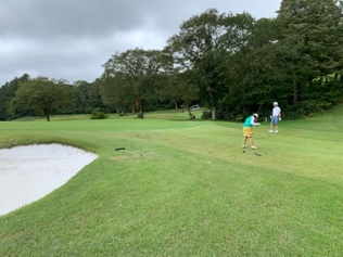 (右)手強いグリーン手前バンカー。私は、左斜面から奇跡的アプでパーゲット!
