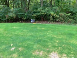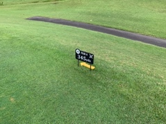 (左)No.15ティー看板、コースはやや右ドッグレッグです。