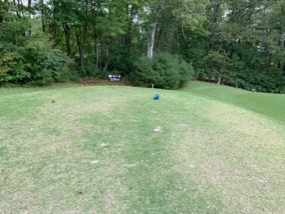 (中)左の木は視界を絞っていますが、一打目の落下地点は広く緩やかなダウンスロープです。