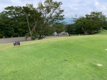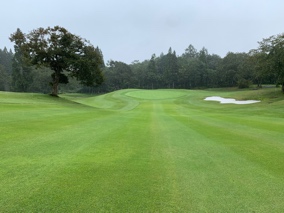 (中)フェアウェイセンターに御神木、少し先の左にも木が視界に入ります。