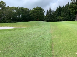 (中)グリーン手前の右フェアウェイからティーグランド方向を振り返ります。