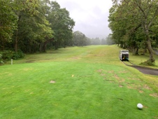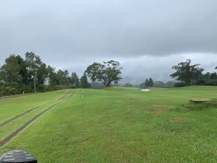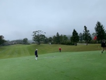 2日目のティーグランド、雨が激しくなりグリーン方向が霞んでいます。