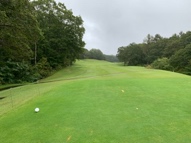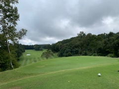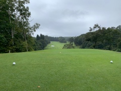 (右)どストレート打ち上げホール、ティーから左右の林が迫り気になります。