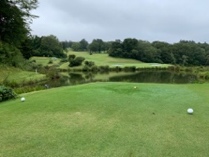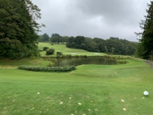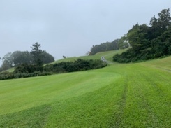 (右)前半最終のパー3、谷越え&やや打ち下ろしホールですが、どうしても打ち上げに見えます。