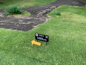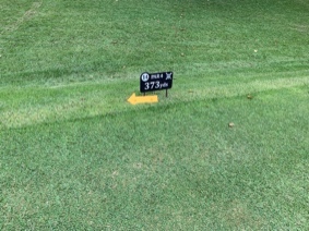 (左)No.4ティー看板、短めですが打ち上げホールです。