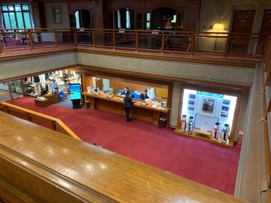 アカデミーなどの受付もあるストレッチスペースが広くあります。