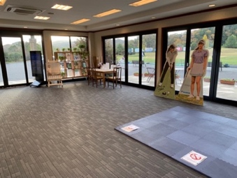 ゴルフレンジの左側に位置する屋根の下の打席、ゴルフレンジの他、メンテナンスされた広い実践さながらのバンカーエリア・メンバーコースと同じコンディションでのパター・アプローチが可能です。