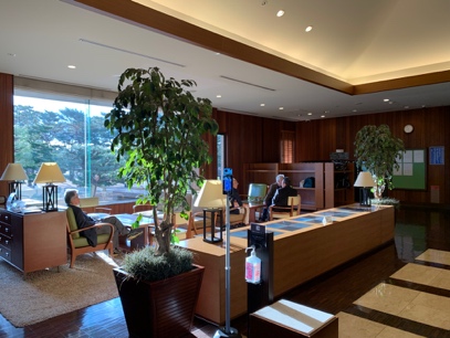ロビーの床は格子柄模様がデザインされて奥行きを感じます。