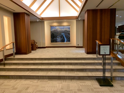 渡り廊下の突き当たりの絵画の右側を曲がったレストラン棟の入口には、メンバーならいつかは刻みたいチャンピオンボードがお迎えをしてくれます。