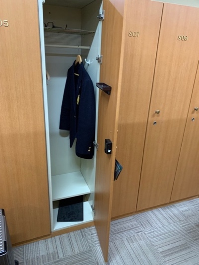 スタート室の左横にあるキャディバッグ保管庫です。(左)