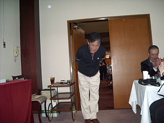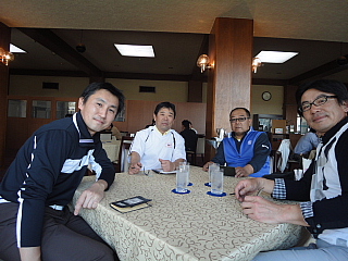 9時59分からアウト・インともに5組ずつのスタートという遅めのスタートで、9時20分に2階レストラン奥のコンペ会場にお集まり頂きました。