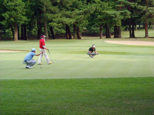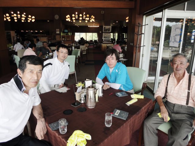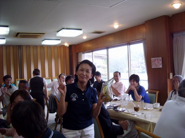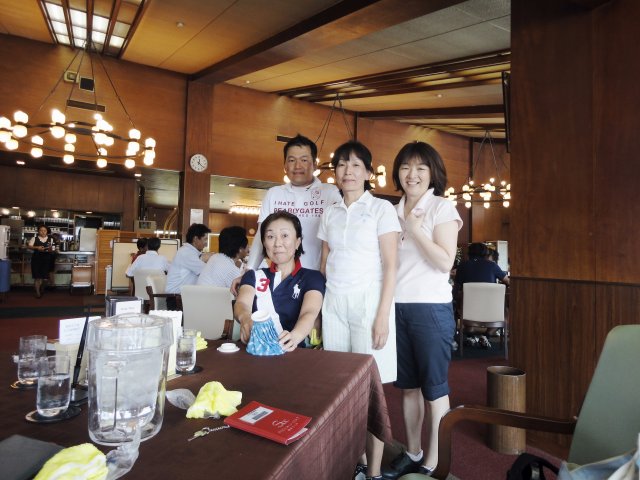 東コーススタートの組は2時間半でそれぞれが上がって来たが、中コースからの組がなかなか上がって来ない。進行はよろしくない模様。が、皆さん、初めての方々とのラウンドの中、にこやかな表情が印象的でした。