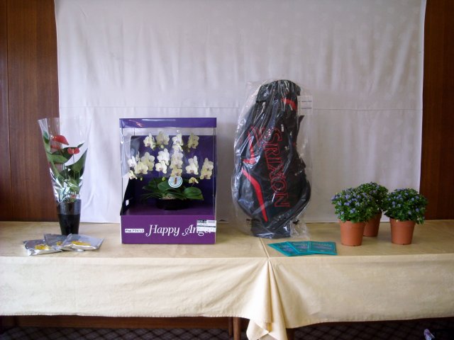16時15分過ぎ、弊社社長前田の挨拶の後、例の調子で懇親会が進行し始めます。総武カントリークラブ会員課平岩さんから、ご挨拶を頂戴し、キャディバッグの贈呈がなされました。