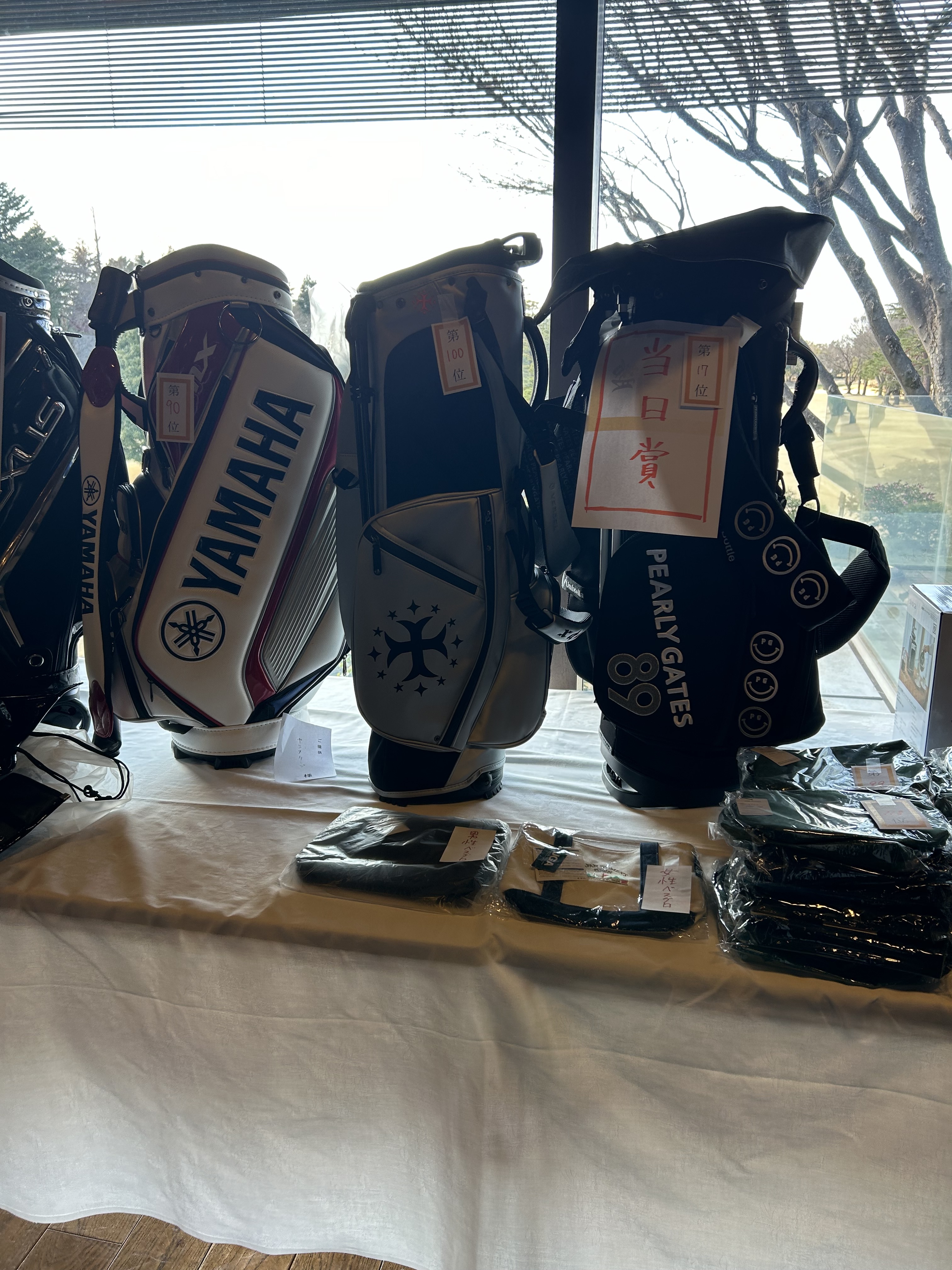 タケ小山賞はタイトリストキャディバッグを、マエシン賞はレクサスキャディバッグを、当日賞はパーリィゲイツキャディバッグが手渡されました。3名の皆様おめでとうございます!