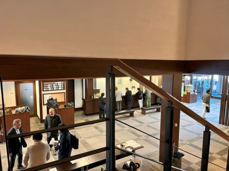 エントランスでは弊社社長のマエシンが縁の皆様をお出迎えいたします。「おはようございます」「お世話になっております」「お久しぶりです」 受付では30周年のお祝い並びに「これ賞品用に使って下さい」と多くの賞品を縁の皆様から頂戴いたしました。また「これ社員の皆さんでお召し上がり下さい」と差し入れまで頂戴いたしました。