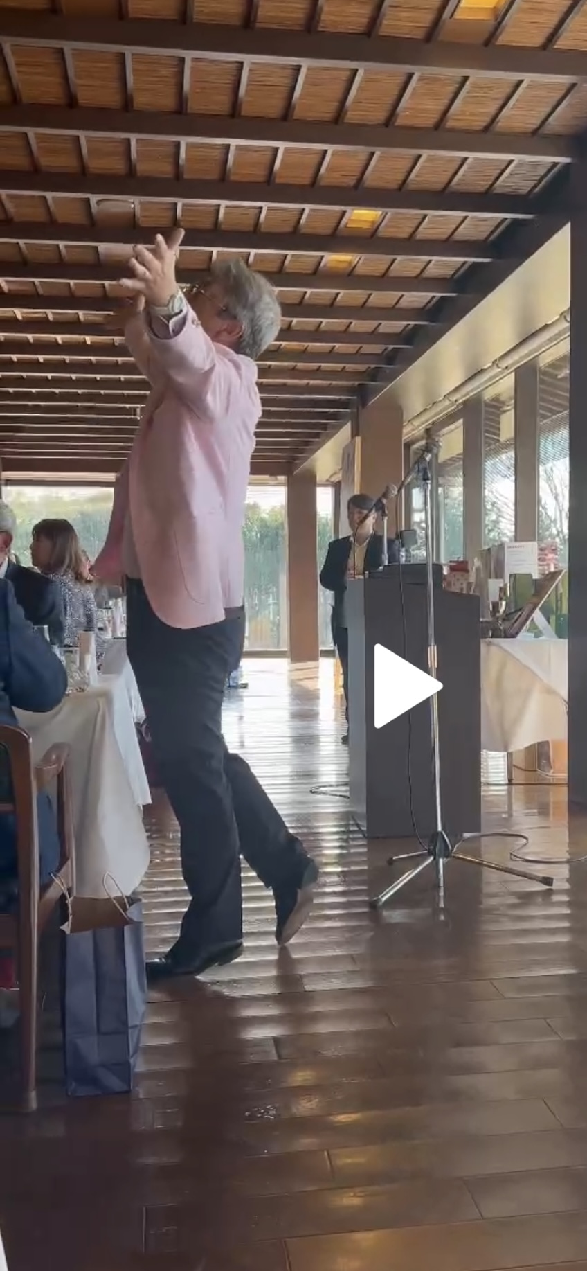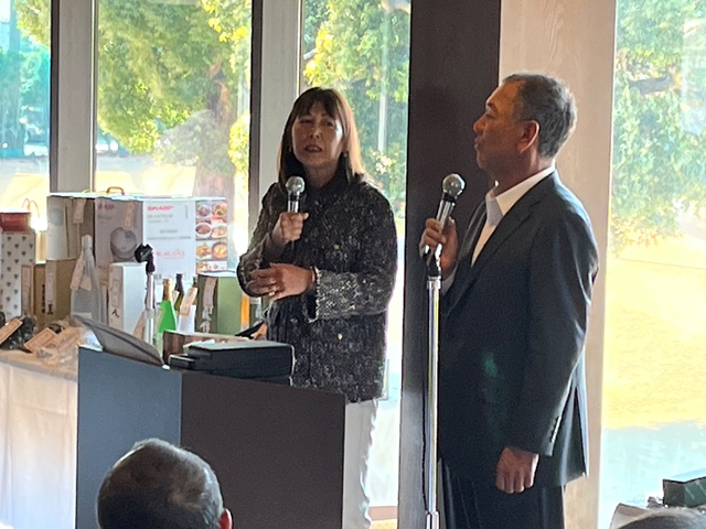 皆様、パーティー会場にお入りくださいのアナウンスとともに次々と席が埋まっていきます。ここでマエシンからの紹介で、TRPXの社長様から片山晋呉プロも使用している「Fabulous(ファビュラス)」についてご説明をして頂きました。その後は縁の方のご紹介などもあり、会場が盛り上がっていきます。