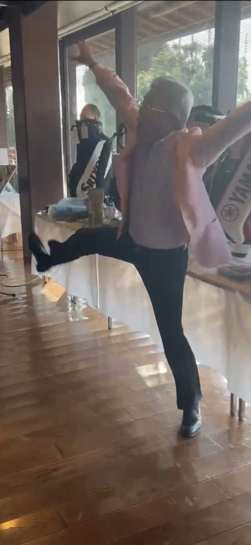 さあ、トワリヴィエの皆さんの演奏もいよいよ最後の曲となりました。最後はマエシンが踊りながら?会場を盛り上げます。