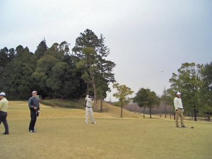 紅一点のY.Y女史が「皆さんと同じ黒ティーでプレーしようかしら」の発言から、Y.Y女史よりグロスでスコアが悪かった人には罰金だと取り決めをミーティングで行った。今日は新ペリアではなく、ペリアで順位を決める。