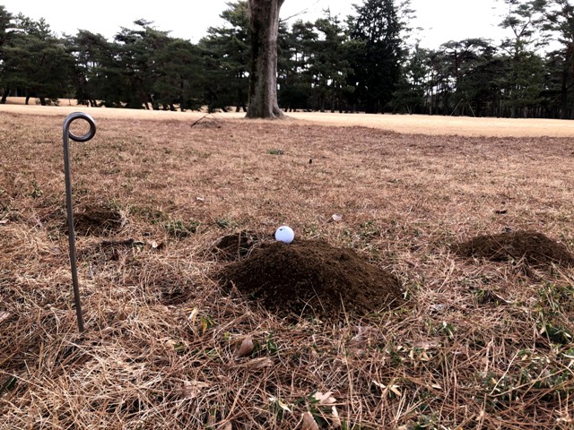 あるホールでは、ティーショットが林の入口ぐらいで止まってくれたかなと思ったら、盛りあがった土の上に鎮座されています。ティーアップというには少々無理があるけど、林の入り際だからそこそこ良いところまで打てるはず。クラブを短く持って、うりゃっ。。。スカーンとナイスボレーで返されまして、バックサイドにコートイン!じゃなくて白杭の内に着地した後に外へ転がります(欲張ってギリ狙いなんてするからダナ)。その後もティーショット・セカンドともに林へと呼ばれ続けて今日は木の精に好かれたみたい。そうか、みんなが明るい芝の方ばかりに行ってしまって、遊びにきてくれないから寂しいんだな。僕が遊んであげよう(ちょっとキモいぞ)。OBがほぼ出ないはずの龍ヶ崎でわずか6Hで3発のOB/ロストを献上です。スタート早々から開店出血大サービスでごじゃります。