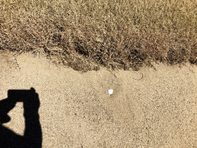まあ、いつものごとくで1ホール終えて、次は2打目を調子に乗って長いクラブでトライすると、右に曲げて池に放り込むことになるホール(アンタだけだな)。幸か不幸かチョロッたおかげでショートアイアンの3打目になります。かえって良いんじゃないのとポジティブ思考であわよくばと打ったのですが、どシャンクしまして池突入(アーア)。打ち直しの5打目はとんでもなく左へと結果はネガティブ続き。