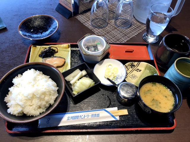 練習場、練習グリーンにいってから、今日のスタートである東へ。まあ、いつものごとくでダボチンくんを大量発生させながら終了。天気良くて良かったですね~と同組の方と言いながら(スコアには触れずダナ)、お昼です。今日は熱燗補給して、後半へ。