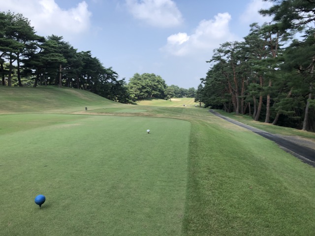 暑さのピークは過ぎたかと思っていたのですが今日も猛暑日予報です。水分補給しながらいきましょう。で、ティーショットが山を抜けられずに、斜面を登って降りてのスタートです。次のホールも林にカーン、その後もそんな調子(いつも通りだなぁ)。