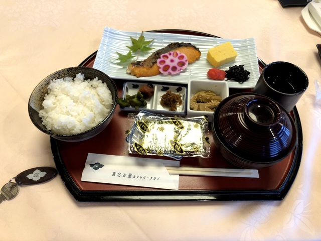 クラブハウスに早めに到着したら朝食もしっかりいただいて満腹、天気も良くて気持ちよくラウンドできそうです。スタートはロングからです。これが届けばボギーオンだぞの4打目、なぜかナイスな当たりすぎてグリーンオーバー(あーあ)。パットが入ってくれたのでなんとかラッキーボギーでスタートです。しかし、その後はダボトリと順調に成長してくれやがります。そうこうして前半終了しまして、お昼は10Hそばのお茶屋?さんで短時間とのこと。片山津の日本海と加賀もこのパターンですね。中部北陸では標準なのかな。アウトスタートのワンウェイスルーが基本だと言うことですし市街地からも近いので車でさっさと帰る方も多そうですが、クラブハウスのレストラン営業は大丈夫なのでしょうかね。