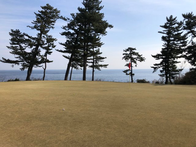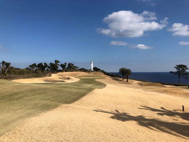 2日目はタクシーでコースへ。タクシーのなかでスタートに向かうバスに乗り遅れないようにと教えてもらいます。なるほど富士のインスタートは随分離れていましたのでこれは歩きでは厳しいですね。10番はショート。今日も周囲とティグランドが近いですね。そのせいか皆さん苦戦されているように思います。オイラはどんなもんかいねとドキドキしながらのティーショットは左バンカーへ、一発で出てボギースタートです。そしてつぎのロングは白亜の灯台に向かっていくホールです。左のラフからのセカンドは脱出できずに3打目をフェアウェイに戻してボギーオンしましたが、あれ~と3パットです。次は灯台の応援を背に受けながら打ち上げていきます。左の入り込んでいる崖が気になりますので右目にいかないとな。しか~し、なぜか気になっていたところにボールをお供えすることとなりました。グリーン周りでもバタバタしたうえに3パットです。ぐおおお。中盤はボ・ダ・ボとなったので、これぐらいでなんとか落ち着かせたいと思いましたが、ショートで3パットダボ。ラス前はセカンドバンカーから出せず。前半ラストホールのティーショットは左の木に当ててしまいます。ボールのところにいってみると枝が邪魔になり上げられません。低い球にしないといけませんが、手前のバンカーは超えたい、できれば距離も欲しいと欲張った結果は思った方向よりもずいぶん右に出てしまいまして反対サイドのバンカーイン。なんとかグリーン脇まできたのですが、パターで寄せるつもりがツーっと外まで出しちゃいました。もうヘロヘロで前半終了です。