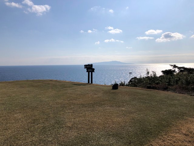 初日は大島コースで、グリーンは11フィート。冬の高麗ってやつですね。海に向かう打ち下ろしのティーショットはフェアウェイ、よしっ。パーオンパーのスタートです。ボ・ボときた6番打ち下ろしショートは名物ホールだそうです。ええ、谷に落としました。ガックリ。カートを置いて吊り橋を渡っていきます。この際に次のティーショットクラブも持っていって、つぎのホールの谷越えの1打目を打ってからカートに戻ってくるんだそうです。じつはスペアのボールを持っていなかったのでチョロったらどうしようと人知れずプレッシャーを感じていたのですが、無事フェアウェイに行ってくれました。よくやったオレ。その後はボギー並びで前半終了です。大島は35-35でパー70のコースとはいえ、いつもに比べれば上出来ですね。お昼の休憩所ではラーメンが名物のようですが、私は軽めにサルサドッグとビールを頂いて後半突入です。