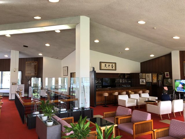 当日は小田原でピックアップしてもらって川奈へ。ロッカールームの中ほどには富士コースロッカーと表示がありました。場所を分けているんですね。富士は特別ということでしょうか。明日が富士ということで表示の内側のロッカーを使わせてもらえました。普段ならレストランでアルコール補充ですが、経済面を鑑みて(切ないねぇ)カート置き場そばのスペースでコーヒーを飲みながら時間を待ちます。このスペースもそれほど広くありませんので、ホテルに宿泊してスタート時間ちょい前に降りてくるというのが基本なのでしょうかね。